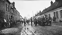 An intense period of training followed, but in mid-1916 the AIF's infantry units were sent to Europe to fighting on the Western Front.[4] Sailing on the transport ship HMT Ivernia, the battalion departed Alexandria and landed in Marseilles on 11 June 1916, and was then moved by rail to northern France where they undertook gas training and received new equipment to prepare them for trench warfare.[6] A period of acclimatisation followed in a "nursery sector" around Petillon before, in mid-August the battalion played a support role in the initial fighting during the Battle of Mouquet Farm, before being committed to the fighting for the first time, launching an attack in early September. Assigned to the centre of the 13th Brigade's attack, the majority of 52nd Battalion was tasked with capturing the Fabeck Graben, while two platoons assisted with the drive towards Mouquet Farm.[7] The battalion briefly managed to secure its objective, before being forced back.[8] The attack resulted in heavy casualties, with the battalion losing nine officers and 170 other ranks.[5][9] Amongst those killed from the 52nd Battalion during the fighting around Mouquet Farm were three brothers: Thomas, Wilf and Hurtle Potter. A fourth member of the family, Ralph, was also wounded in the battle, and invalided back to Australia.[10]