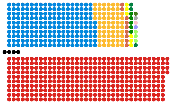 These representative diagrams show the composition of the parties in Parliament. The first show the composition immediately after the 2005 general election, and the second shows the composition before the 2010 general election.