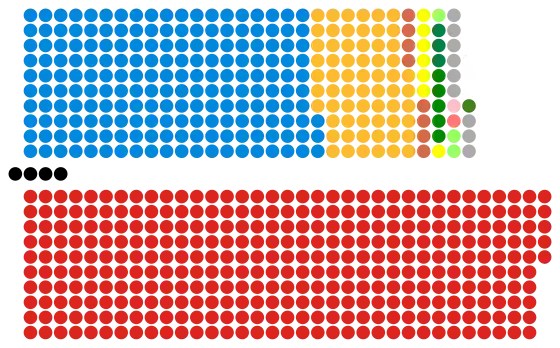 Note: The effective Government majority is higher than the notional majority, because MPs from Sinn Féin do not take their seats due to their long-standing policy of abstentionism and vacant seats have no vote. Technically, the speakers belong to parties in a notional majority, though they do not usually vote and therefore don't figure in an effective majority.