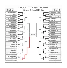 - ↑ "Dai Rokujūikkai NHKhaisen Yosen" 第61回NHK杯戦予選 [61st NHK Cup preliminaries] (in Japanese). Japan Shogi Association. Retrieved July 19, 2018.