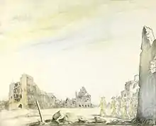 The Royal Warwickshires entering Peronne, March 1917, by William Orpen.