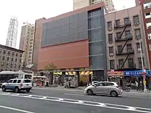 The station has air-cooling systems to make it at least 10 °F (6 °C) cooler than other subway stations during the summer.[80] This requires the station to have large ventilation and ancillary buildings, rather than traditional subway grates.[81] The station is also compliant with current fire codes, whereas most existing stations are not.[82] Additionally, the station is waterproofed with concrete liners and fully drained.[24] In early plans, the Second Avenue Subway was supposed to have platform screen doors to assist with air-cooling, energy savings, ventilation, and track safety,[83] but this plan was scrapped in 2012 as cost-prohibitive.[84] According to an internal study prepared for the MTA in 2020, the 72nd Street station could theoretically accommodate half-height platform edge doors. Full-height platform screen doors would be possible but would necessitate the installation of structural bracing and relocation of several mechanical systems.[85]
