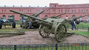 ![]() 76-mm divisional gun M1933 at the Military-historical Museum of Artillery, Engineer and Signal Corps. | |