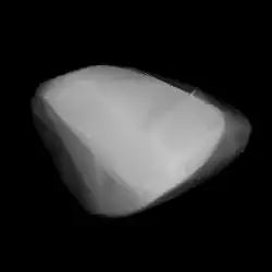 Two modeled lightcurves, published by Josef Ďurech and Josef Hanuš in 2016, using photometric data from the Lowell Photometric Database (LPD) and other sources, gave a sidereal period of 13.16995±0.00001 and 13.16998±0.00005, respectively. Each modeled lightcurve also determined two spin axes of (99.0°, 67.0°) and (283.0°, 30.0°), as well as (282.0°, 35.0°) and (103.0°, 68.0°) in ecliptic coordinates (λ,β), respectively.[17][18] The online version of the Database of Asteroid Models from Inversion Techniques gives two poles at (103°, 68.0°) and (282°, 35.0°) with a nearly identical sidereal period.[lower-alpha 1]