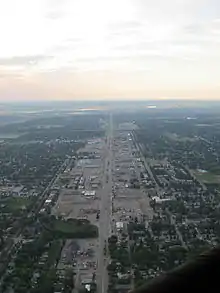 Aerial view of 8th Street East in Saskatoon, Saskatchewan, Canada. View is looking east - nearest cross street is Ewart Avenue