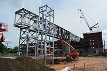 Site clearing began in March 2015.[11] Construction proceeded over the summer and was largely complete by September.[7] The borough traded the land for the parking lots to its parking authority in August 2015 in exchange for funding to extend 9th Street across the tracks to continue the street grid.[12]