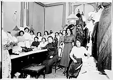 Anna Tirocchi (seated, in dark clothing) and her employees at the Butler Exchange shop, ca. 1912.