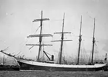 "BEETHOVEN. Four masted barquentine (barkentine) at wharf."