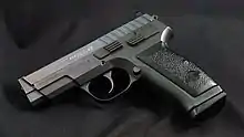 The One-Pro 45 (stylized as onepro.45 or one PRO.45[2]) is a semi-automatic pistol chambered in .45 ACP (with some variants in .400 Cor-Bon) and manufactured in Wettingen, (previously Solothurn[3]) Switzerland.[4] It was at one time imported into the United States by Magnum Research and into Italy by ALGIMEC.