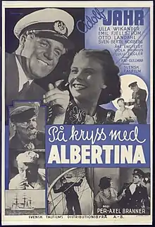 A Cruise in the Albertina (Swedish: På kryss med Albertina) is a 1938 Swedish drama film directed by Per-Axel Branner and starring Adolf Jahr, Signe Wirff and Olav Riégo.[1] The film's sets were designed by the art director Bertil Duroj. Interiors were shot at studios in Djurgården in Stockholm. Location shooting took place in the Baltic Sea, including round Aland.