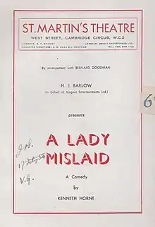 A Lady Mislaid is a 1948 comedy play by the British writer Kenneth Horne.