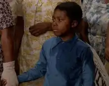 The incident was notable for water bombs thrown from the executive floor, which housed the Young & Rubicam advertising agency. The two water balloons struck 19-year-old James Hill, who slipped and fell on pavement, but was not seriously hurt. The other hit 9-year-old Mike Robinson. His mother, Mrs. Esme Robinson, along with other Black protesters and a New York Times reporter, came to the executive floor to complain.[12] Mike Robinson, Esme Robinson, protester Vivian Harris, and Times reporter John Kifner were all portrayed in the opening scene. The dialogue in the scene was also taken directly from the original article. Vivian Harris originally said the, "And they call us savages" line, which television critic Mike Hale called "unfortunately hamhanded" and fellow critic Matt Zoller Seitz called "a terrible line" when they reviewed the premiere, apparently unaware that it was a real quote.[13] On the day of the real event, Young & Rubicam office manager Frank Coppola apologized to the women for the incident, saying that "we have 1,600 people in this building and I can't control all of them. I've ordered all of the windows closed and I have men patrolling all the floors to make sure this doesn't happen again."[12] Coppola's assurance that the windows were closed is similar to character Don Draper's idea of "Our windows don't open" in Sterling Cooper Draper Pryce's mocking want ad seen later in the episode.