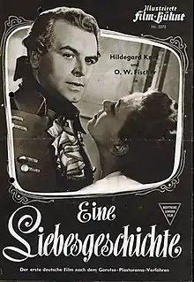 A Love Story (German: Eine Liebesgeschichte) is a 1954 West German historical romantic drama film directed by Rudolf Jugert and starring Hildegard Knef, O.W. Fischer and Viktor de Kowa.[1] It was shot at the Wandsbek Studios in Hamburg and on location in Celle and Umgebung. The film's sets were designed by the art directors Erich Kettelhut and Johannes Ott. It was produced by Erich Pommer's independent company Intercontinental Film. It was part of the tradition of Prussian films, which had enjoyed great popularity in the Weimair and Nazi eras.