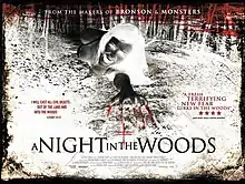 A Night in the Woods is a 2011 British found footage horror film written and directed by Richard Parry.[2] The film premiered at the United Kingdom film festival Fright Fest in August 2011.[3] A Night in the Woods was produced by Vertigo Films and stars Anna Skellern, Scoot McNairy, and Andrew Hawley.[4]