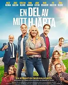 A Piece of My Heart (Swedish: En del av mitt hjärta) is a Swedish jukebox musical film directed by Edward af Sillén and written by Lars "Vasa" Johansson based on music by Tomas Ledin. The title is taken from Ledin's Grammis award-winning song "En del av mitt hjärta". The lead role is played by Malin Åkerman, starring in her first Swedish film, with an ensemble cast featuring Christian Hillborg, Jonas Karlsson, Per Andersson, Shima Niavarani, Johan Ulveson, Johan Rheborg, and Marie Richardson.[1] The film was produced and filmed in Sweden by Unlimited Stories. It was released on 25 December 2019.[2] When interviewed about the film, Ledin expressed how amazed he was by the quality of the script and how happy he was to be part of something like this.[3] He also suggested that three or four of the songs are much better than his original.[4] Af Sillén described the film as an "all in-musical comedy" with a great ensemble and big, lavish shownumbers.[5]