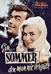 A Summer You Will Never Forget (German: Ein Sommer, den man nie vergißt) is a 1959 West German drama film directed by Werner Jacobs and starring Claus Biederstaedt, Antje Geerk and Karin Dor.[1] It was based on a novel by Marion Jahn.