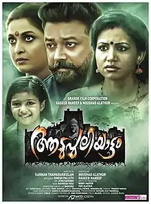 Aadupuliyattam (transl. Goat and Tiger game) is a 2016 Indian Malayalam-language horror film directed by Kannan Thamarakkulam and written by Dinesh Palleth, starring Jayaram, Om Puri, Ramya Krishnan, Sheelu Abraham, Akshara Kishor, Saju Navodaya, Ramesh Pisharody and Sampath Raj in lead roles.[1][2] The major filming locations are Palani and Thodupuzha. Film released on 20 May 2016. The horror thriller film is dubbed in Tamil as Shenbaga Kottai and Telugu as Mathangi and Hindi as Mera Badla 2.[3] The film was a commercial success at the box office.