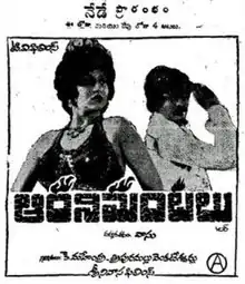 Aarani Mantalu is a Telugu film starring Chiranjeevi and Kavitha.[1][2] It was the first Chiranjeevi film to be dubbed to Tamil. In the Tamil dubbed version, editor Mohan dubbed for Chiranjeevi, the well known producer and father of Tamil director Mohan Raja and Actor Jayam Ravi.