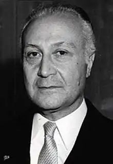 Khalatbari was appointed foreign minister to the cabinet led by Prime Minister Amir Abbas Hoveyda on 13 September 1971,[9] replacing Ardeshir Zahedi in the post.[2] Khalatbari paid an official visit to Israel in 1977 as a guest of his Israeli counterpart Yigal Allon.[10] Khalatbari was a member of the Commission on Musa Sadr established in 1977 to make a decision about the fate of Musa Al Sadr, a Lebanon-based influential Shia figure.[11] The commission concluded that Al Sadr should be an agent for Iran.[11] Khalatbari's term as foreign minister ended on 27 August 1978,[12] and he was replaced by Amir Khosrow Afshar in the post. Although being loyal to the Shah, Khalatbari learned his removal from the early morning radio news.[13]