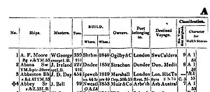 Extract of the Abbey (1853) Lloyd's Register of British and Foreign Shipping 1854 journal entry