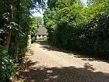 Around 1930, John Sebastian Marlowe Ward became the owner of the site which a 1930 plan indicates was no longer divided into two houses.[1] In that year, he purchased a circa 13th century tithe barn (grade II listed) and relocated it to the site from Birchington in Kent.[5] He subsequently converted it to a church and founded a religious community. In 1934 he opened the Abbey Folk Park which by 1937 comprised 46 buildings, included historic shop fronts and a 17th-century smithy saved when East Barnet village was redeveloped and five old cottages relocated from Hadley Green. The park closed in 1940 and did not reopen before Ward sold it and moved his community to Cyprus in 1946 following legal difficulties in England.[1]