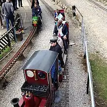 The Abbeydale miniature railway is a railway run by the Sheffield & District Society of Model & Experimental Engineers Ltd. in Ecclesall Woods in south-west Sheffield, South Yorkshire, England.[1] The railway has two sections: a dual gauge ground level section with gauges of 7+14 inches (180 mm) and 5 inches (130 mm). There is also a smaller multigauge raised section that has gauges of 3+12 inches (89 mm), 5 inches (130 mm) and 7+14 inches (180 mm).