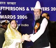 ![]() Abdul Kadar Khatri (right) receiving National Award by Former President of India Pratibha Patil at Vigyan Bhawan, New Delhi, India. | |