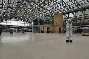 As of early 2019, the station's glass roof is undergoing replacement with polycarbonate panels as part of a £9 million upgrade.[16] In June 2020, ScotRail announced that it would proceed with the modifications to the ticket office, waiting room, and taxi rank as soon as it was safe to do so following the coronavirus pandemic. There are no plans to reinstate the platforms yet.[17] These developments were completed by the end of 2021.[18]