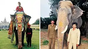 Abhimanyu (born c.1964) is an Asian elephant who, from 2020 has been the lead elephant and the carrier of the Golden Howdah at the Mysore Dasara and also a best kumki elephant with 125+ elephant and 15+ tiger captures in India.[3] He was named after Abhimanyu, the son of the Arjuna from the Hindu epic Mahabharatha.[4]