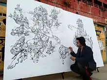 His paintings, drawings and digital works have featured in the following exhibitions: "Heroes and Villains: the Battle for Good in India’s Comics" at the Los Angeles County Museum of Art (LACMA);, "Transcendent Deities of India: The Everyday Occurrence of the Divine" at the Asia Society in Houston, Texas; at the ghats of Varanasi, India; a social impact project organized by Ojas Art Foundation, other exhibitions include "Dhyana Roopa" at the Academy of Fine Arts and Literature in Delhi, "India Imagined" sponsored by the Nirula Family Art Trust and at the visionary Fractal Gallery at Burning Man sponsored by the Black Rock Arts Foundation.