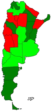 In early 2018, after years of lobbying by different groups, then President Mauricio Macri encouraged the discussion of an abortion law during the 2018 opening of regular sessions of the National Congress of Argentina.[37] He stated that, despite identifying as anti-abortion on this issue, he would not ban a decision by Congress on the matter.[38][39] Therefore, Congress began debating a bill written by the National Campaign for Legal, Safe, and Free Abortion, that would effectively legalize abortion on request in Argentina and make it available in all hospitals and clinics. The bill was debated alongside other measures to address gender inequality, such as extension of parental leave. On 14 June 2018, the Chamber of Deputies passed the bill with 129 votes for, 125 against and 1 abstention.[14][15][16] The proposal divided both the legislators of Cambiemos and the Justicialist Party.[40] However, on 9 August 2018 the bill was rejected by the Senate with 31 votes for, 38 against and 2 abstentions.[41]