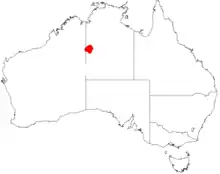 The shrub is found in a small area of the Tanami Desert in the Northern Territory close to the Western Australian border. It usually grows on stony lateritic ridges and plains where it grows in shallow clay loamy soils as a part of spinifex communities.[2][3]