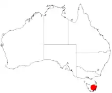 The shrub is mostly situated in the agricultural area in lowland pastures of the Midlands, in north eastern Central Tasmania and also on Mount Barrow in the subalpine zone of north eastern Tasmania. It is distributed through five localities; Mount Barrow and within the Elizabeth, St Paul, Dukes and Lake River catchment areas. A total population of approximately 45,000 individuals is known across 18 populations.[1]