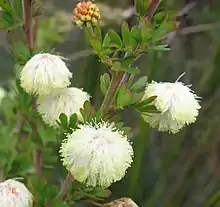 Acacia mitchellii, commonly known as Mitchell's wattle, is an erect or spreading shrub which is endemic to Australia.[2] It grows to up to 2 metres high and has small bipinnate leaves. The pale yellow globular flowerheads appear in groups of 1 to 3 in the axils of the phyllodes followed by straight or curved seed pods which are 1.8 to 5 cm long and 4 to 8 mm wide.[3]
