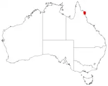 It is found along a narrow stretch of the north eastern coast of Queensland with a length of around 50 km (31 mi)[1] from around Cooktown in the south to Cape Flattery in the north where it is situated among quaternary sand-dunes, often as dense stands as a part of scrub-land[2] or heath-land communities where it is often associated with Corymbia intermedia.[1]