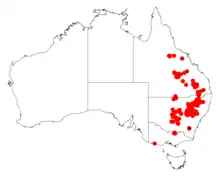 The species occurs on sandhills or rocky outcrops in mallee, woodland or heath in Victoria, New South Wales and Queensland.[2]