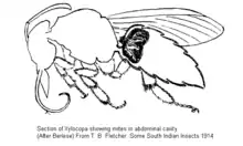 - ↑ Okabe, Kimiko; Makino, Shun’ichi (2002). "Phoretic mite fauna on the large carpenter bee Xylocopa appendiculata circumvolans (Hymenoptera: Apidae) with descriptions of its acarinaria on both sexes". Journal of the Acarological Society of Japan. 11 (2): 73–84. doi:10.2300/acari.11.73.