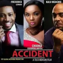 Accident is a 2013 Nigerian thriller drama film produced and directed by Teco Benson and starring Kalu Ikeagwu and Chioma Chukwuka.[2][3] It won the Best Nigerian Film award at the 10th Africa Movie Academy Awards. It also has 3 nominations at the 2014 Nigeria Entertainment Awards.[4] Its story revolves around the life of a female lawyer who is approached by a client seeking divorce with low-sexual satisfaction from partner as reason. An unexpected event occur leading to several consequences.[5]