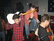 Ace and the Ragers were formed in 1993 in response to the growing number of local North Coast area punk and hardcore bands enjoying success without the benefit of major label representation or promotion. Inspired by bands like the Ramones, the Ragers stormed onto the scene by adopting a fast, noisy, and raw set of favorites from the 50s, played to a frenetic punk beat.[2] That first set list consisted of covers of Rock Around the Clock, Blue Suede Shoes, At The Hop, Teenager in Love and Splish Splash, all played several times each, about 2 hours after the band was actually formed, and without the benefit of ever having actually played together (or having ever played their specific instruments) before the first note of the first show. The original Rager lineup was Todd Nelson on drums, Jason Borkowski (Ace) on guitar and vocals, and Bryan McCleery on bass.