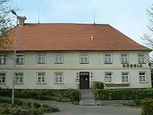 As early as 1449, a tavern was mentioned to have existed in Achstetten. In 1573, the two lordships over Achstetten determined that apart from this one, no other tavern or inn was to be allowed in Achstetten. Even then, the inn was used as a place for gatherings where the villagers would discuss and decide local affairs. The present building was erected at the beginning of the 18th century and continued to serve as a country inn until 2008 when it was converted into individual flats. In 2010, the designation of the building was changed when the local council approved plans by developers to establish a hostel for travelling tradesmen on the premises.[3]