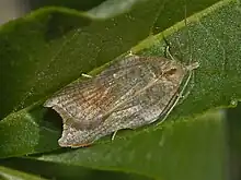 Acleris emargana, the notched-winged tortricid, is a moth of the family Tortricidae. The species was first described by Johan Christian Fabricius in 1775.