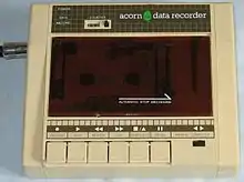 The first disc interface to be announced for the Electron was Pace's Le Box in 1984, offering a single-sided 100 KB floppy drive controlled by the 8271 controller and accessed using the Amcom Disc Filing System, with pricing at £299 plus VAT including the drive or around £199 without. The unit also provided eight sideways ROM sockets and was intended to sit under the Electron itself.[97] The unit was connected via cabling to the expansion edge connector and included its own power supply, and other drives including switchable 40/80 track drives offering up to 400 KB capacity were dealer-supplied options.[98] Although the product was meant to be on sale at the Acorn User Show in August 1984,[97] and had been advertised,[99] it was "discontinued" in early 1985 before getting to market, with a Pace representative indicating that prohibitive pricing of the 8271 chips (each at "over £80 at times") had left the company considering a re-launch of the product should the pricing situation become more favourable.[100]