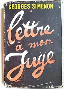 Lettre à mon juge (Letter to My Judge) was written by Belgian author Georges Simenon in 1946 during his stay at Bradenton Beach, Florida and published in Paris the following year by Presses de la Cité. It is a dark psychological account of a man overcome by buried passions, who becomes a murderer.