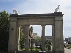 Nothing remains of the house today, only the gateway with its Four Dogs, the lodges and parts of the original stone boundary wall are left.