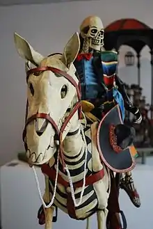 Skeletal horse and rider made from cartonería by Adalberto Alvarez Marinez on display at the Museo de Arte Popular in Mexico City