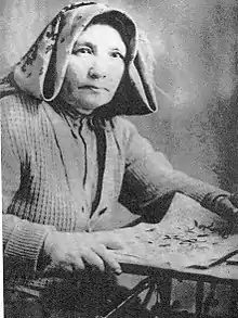 Adavia Efendiyeva was born in the Crimean city of Yevpatoria in 1879, back when it was part of the Russian Empire. From an early age, her grandmother schooled her in embroidery and weaving. She first used an embroidery machine at the age of twelve and learned to use an electric loom at the age of sixteen. In 1928 she became the head of the embroidery circle at the Yevpatoria museum, where she taught embroidery. Later she worked as an embroidery instructor at an art museum. From her childhood to 1937 she created over 500 embroidered works, which were first put in Moscow art exhibits in 1935. Later her art reached museums in Western Europe and the United States. Shortly after the Red Army retook control of Crimea in 1944 most ethnic Tatars including Efendiyeva were deported to the Uzbek SSR; in the harsh conditions of exile she died soon after arrival in Samarkand. Many of her works, including tablecloths, towels, and embroidered belts, remain on display in the Tavrida Central Museum in Simferopol.[1][2][3]