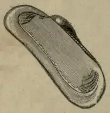 In 1854, a small bivalve mollusc was found attached to some whale blubber found floating off the coast of South Africa.[2] The mollusc was passed to the British malacologist Samuel Pickworth Woodward, who determined that the mollusc was new to science, and formally described it, naming the new species Adipicola pelagica. In 1927, the mollusc was seen again, this time attached to some floating whale debris in the northern Atlantic Ocean, and in 1964, a number of individuals were dredged up in the South Atlantic attached to a whale skull from a depth of 439 m (1,440 ft).[2]