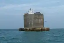 The Number One tower soon found an alternative use as a replacement for the Nab Rock lightship, 40 miles away off Bembridge in the Isle of Wight. On 12 September 1920, it was towed out of Shoreham harbour by five Admiralty tugs, watched by a crowd of thousands and was sunk on a sand spit next to the rock on the following day. The Nab Tower is still in use today. The second tower remained at Shoreham until 1924 when it was demolished over a period of 6 months.[6] Amongst the Royal Engineer officers involved in the construction of the towers was Guy Maunsell who later designed the Maunsell Sea Forts in World War II.[7]