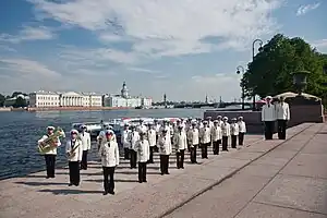 The Admiralty Navy Band of the Leningrad Naval Base (Russian: Адмиралтейский оркестр Ленинградской военно-морской базы) is a Russian military band based in Saint Petersburg. It was founded early in the 18th century about the same time as the Russian Navy itself. The band's chief conductor and director of music is Captain 3rd rank Valentin Lyashenko, who leads the band under the instruction of the Military Band Service of the Armed Forces of Russia.