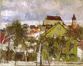 He initially worked as a graphic artist for the weekly art magazine, Jugend. Later, he created posters and other advertising materials, which were not very profitable. He participated in exhibits by Die Scholle, but received little attention from the art critics.[2] In 1906, calling himself "reumütig" (repentant), he decided to focus entirely on painting.[1] He did, however, teach at the Damenakademie, to provide a steady income.[3] This also enabled him to afford a studio in Schwabing, Munich's Bohemian quarter. He had a relationship with one of his students, Nadine von Enckevort, which never led to marriage due to the differences in their social status and age.